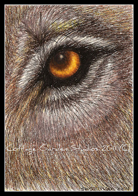 This 5"x7" fine art print features a deep golden wolf eye. Beautifully offered up in pen and ink and colored pencil. It comes to you unframed in an acid free sleeve. The perfect gift for any wolf lover.